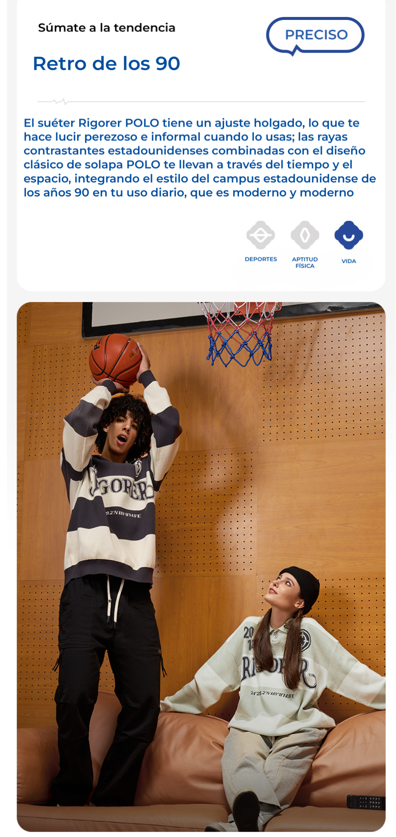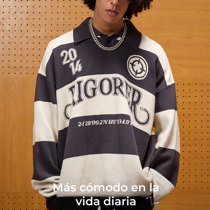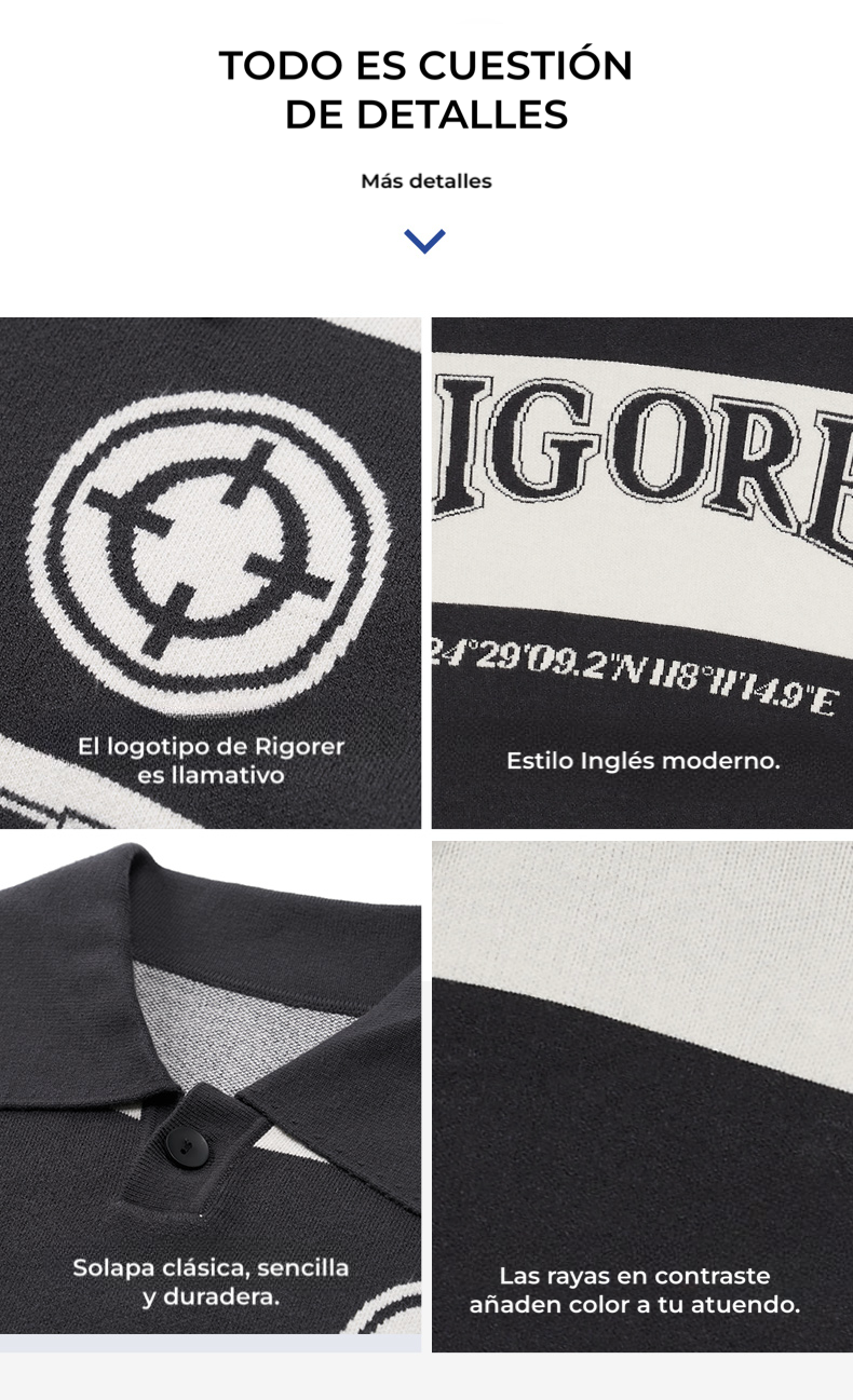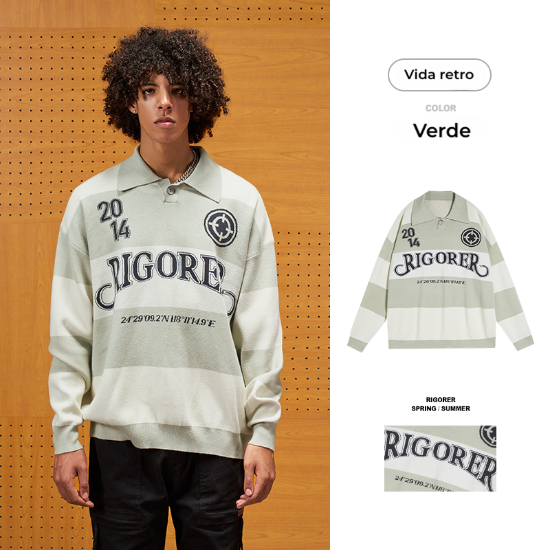El suéter RIGORER Polo combina un estilo retro universitario de los años 90 con la comodidad y suavidad de los materiales modernos. Presenta un ajuste holgado que ofrece una apariencia relajada y casual, ideal tanto para actividades deportivas como para el uso diario. Sus rayas anchas de inspiración estadounidense y el diseño clásico de solapa tipo polo te transportan al estilo de los campus universitarios norteamericanos, integrando lo vintage con lo contemporáneo.