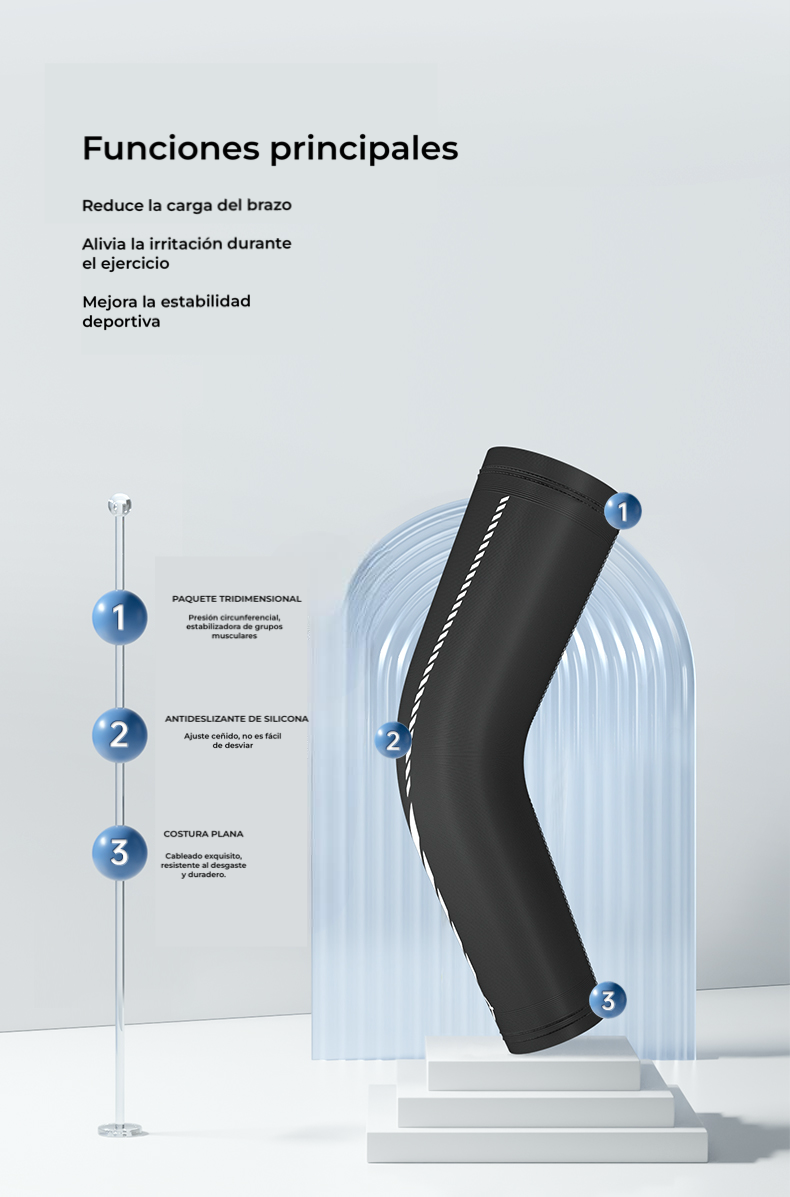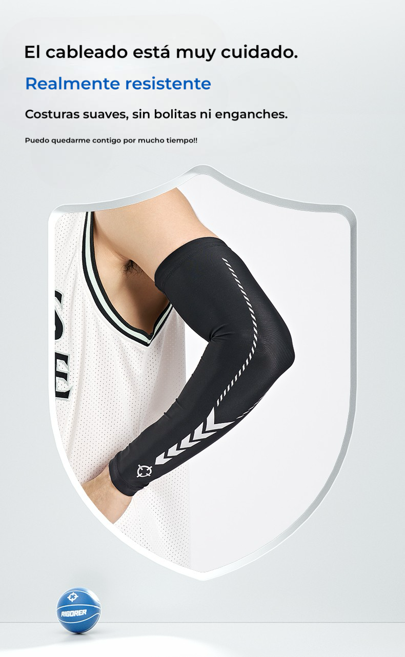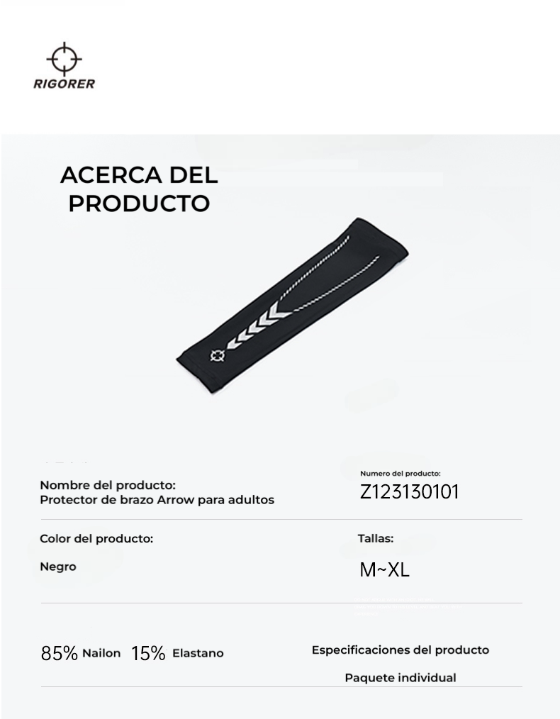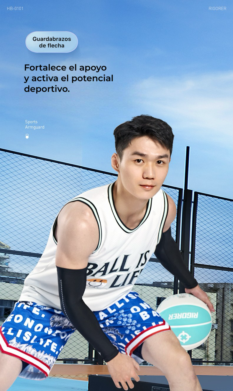 El protector de brazo Arrow de Rigorer está diseñado para brindar soporte, comodidad y protección durante la práctica deportiva, especialmente en el baloncesto y otras disciplinas de alto rendimiento. Su objetivo es fortalecer el apoyo, reducir la fatiga muscular y activar el potencial deportivo, permitiendo al atleta moverse con confianza y seguridad.