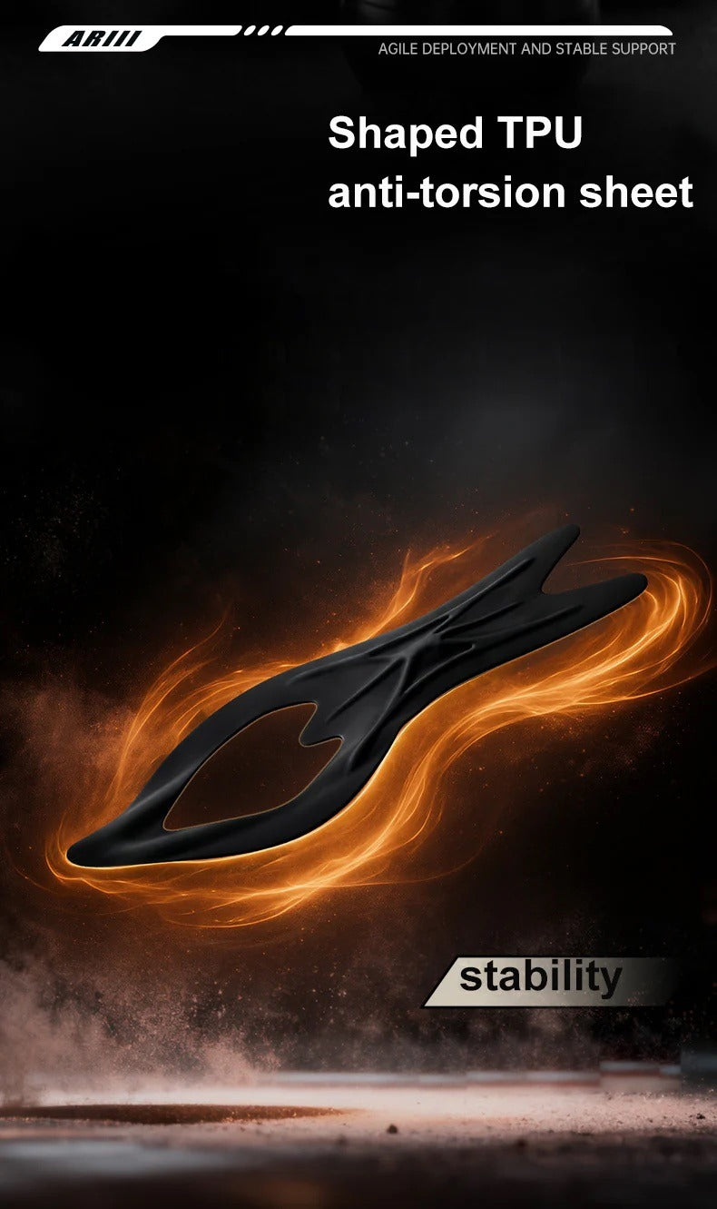 Una lámina de TPU con diseño especial refuerza la zona media, garantizando mayor estabilidad durante los cambios de dirección y evitando la torsión del pie.