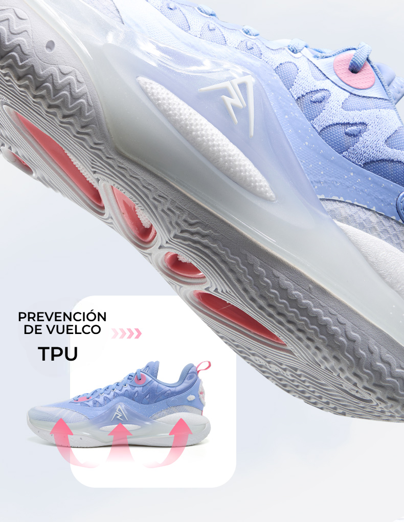 Sistema antivuelco de TPU: Brinda soporte lateral para movimientos rápidos y giros intensos, previniendo lesiones por torceduras.