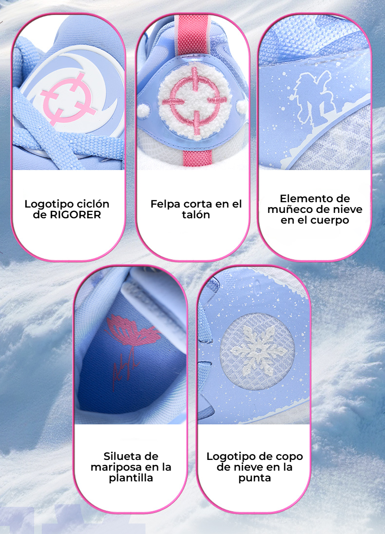 Inspiradas en el poder y la belleza del invierno, las RIGORER AR2 Snowstorm combinan tecnología avanzada con un diseño único en tonos azul hielo, blanco y rosa. Cada detalle evoca la sensación de frescura, ligereza y precisión en cada paso dentro de la cancha.