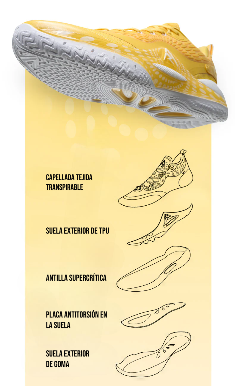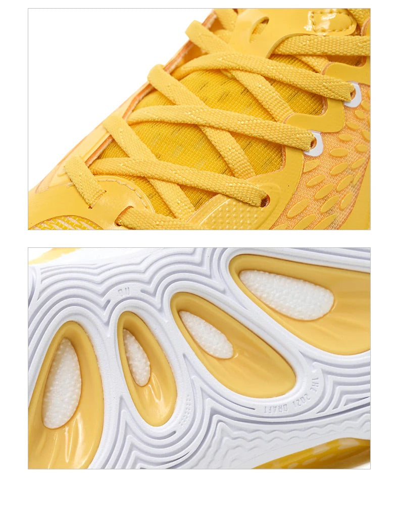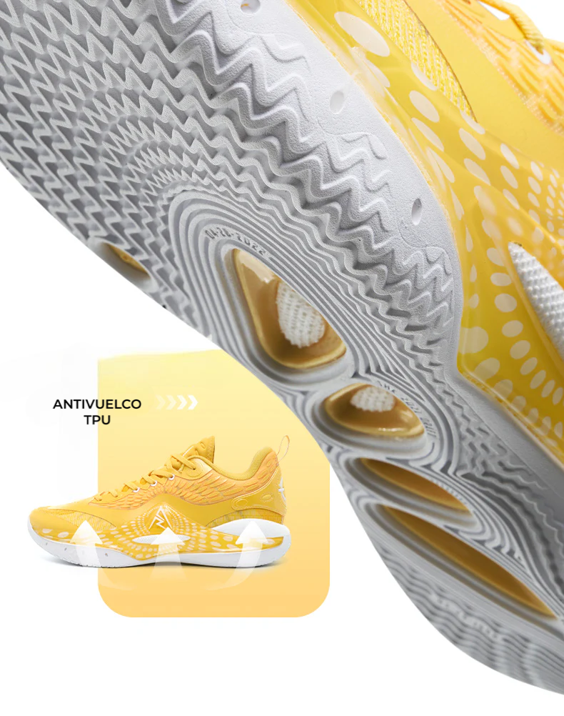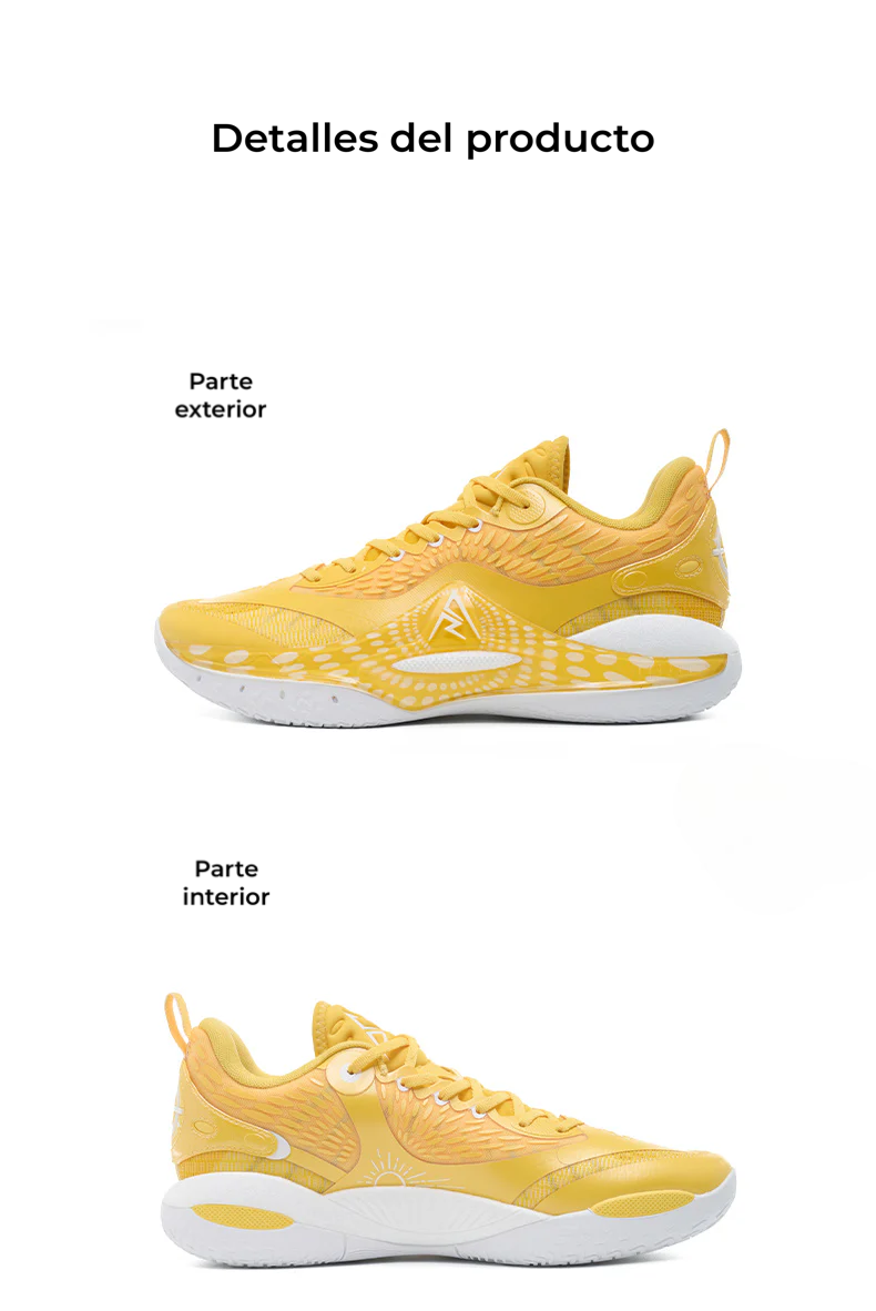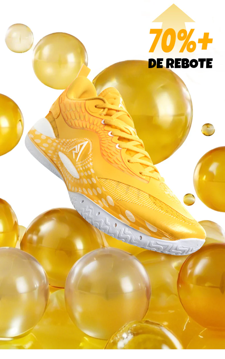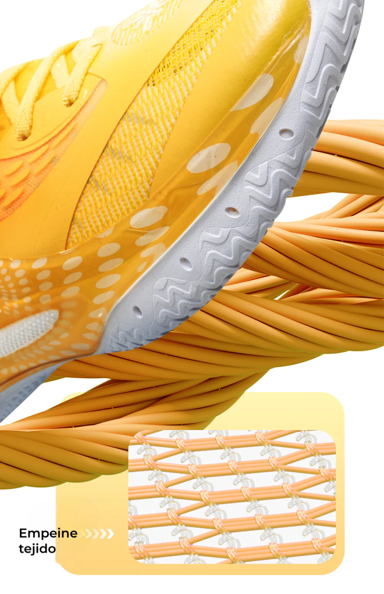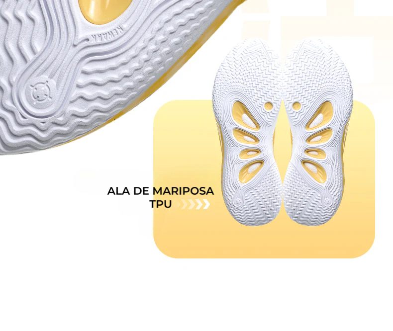 Con una amortiguación avanzada de más del 70% de rebote, una suela antitorsión de TPU con diseño “ala de mariposa” y una capellada tejida transpirable, estas zapatillas ofrecen ligereza, estabilidad y potencia en cada jugada.