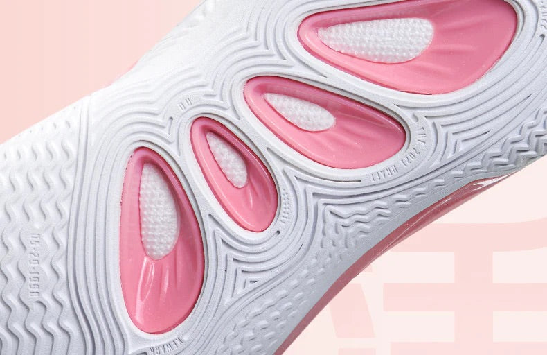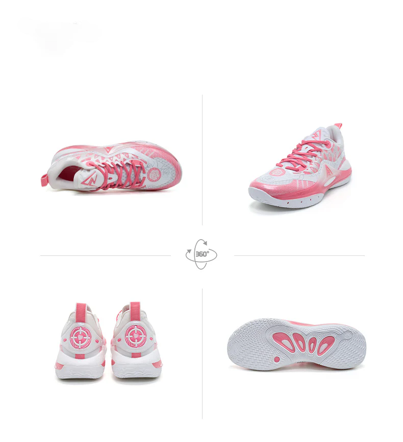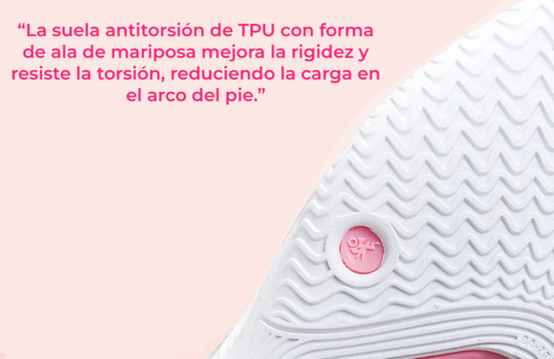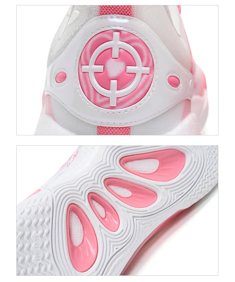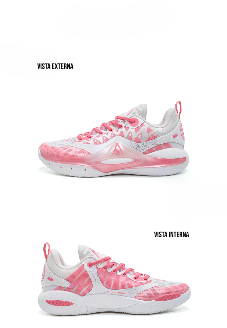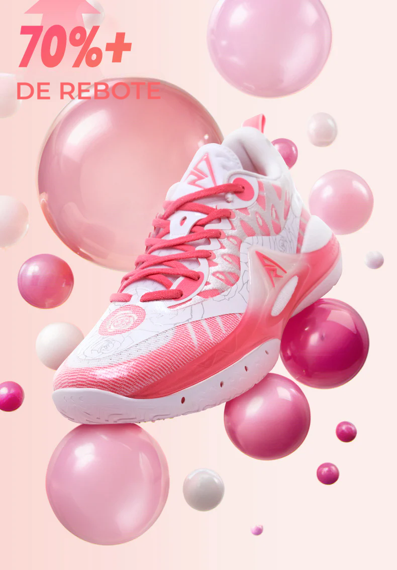 Inspiradas en la delicadeza de las rosas y la ligereza de las mariposas, estas zapatillas fusionan tecnología avanzada con una estética única en tonos rosado pastel y blanco perla, ideales para destacar dentro y fuera de la cancha.