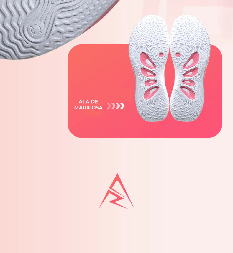 Con más de 70% de rebote, una suela antitorsión con forma de ala de mariposa, y detalles bordados que expresan elegancia, las AR2 ofrecen potencia, comodidad y estilo en cada movimiento.